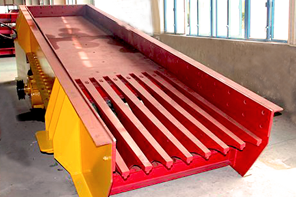 棒條式振動給料機在工作過程中可把塊狀、顆粒狀物料從貯料倉中均勻、定時、連續(xù)的送入受料裝置,在沙石生產線中可為破碎機械連續(xù)均勻的喂料,并為物料進行粗篩分。其適用于破碎機前大塊物料的均勻給料。特別適用于黑色或有色金屬礦石、建筑石料粗碎前的給料,是粗碎破碎機前配套給料的理想設備。
